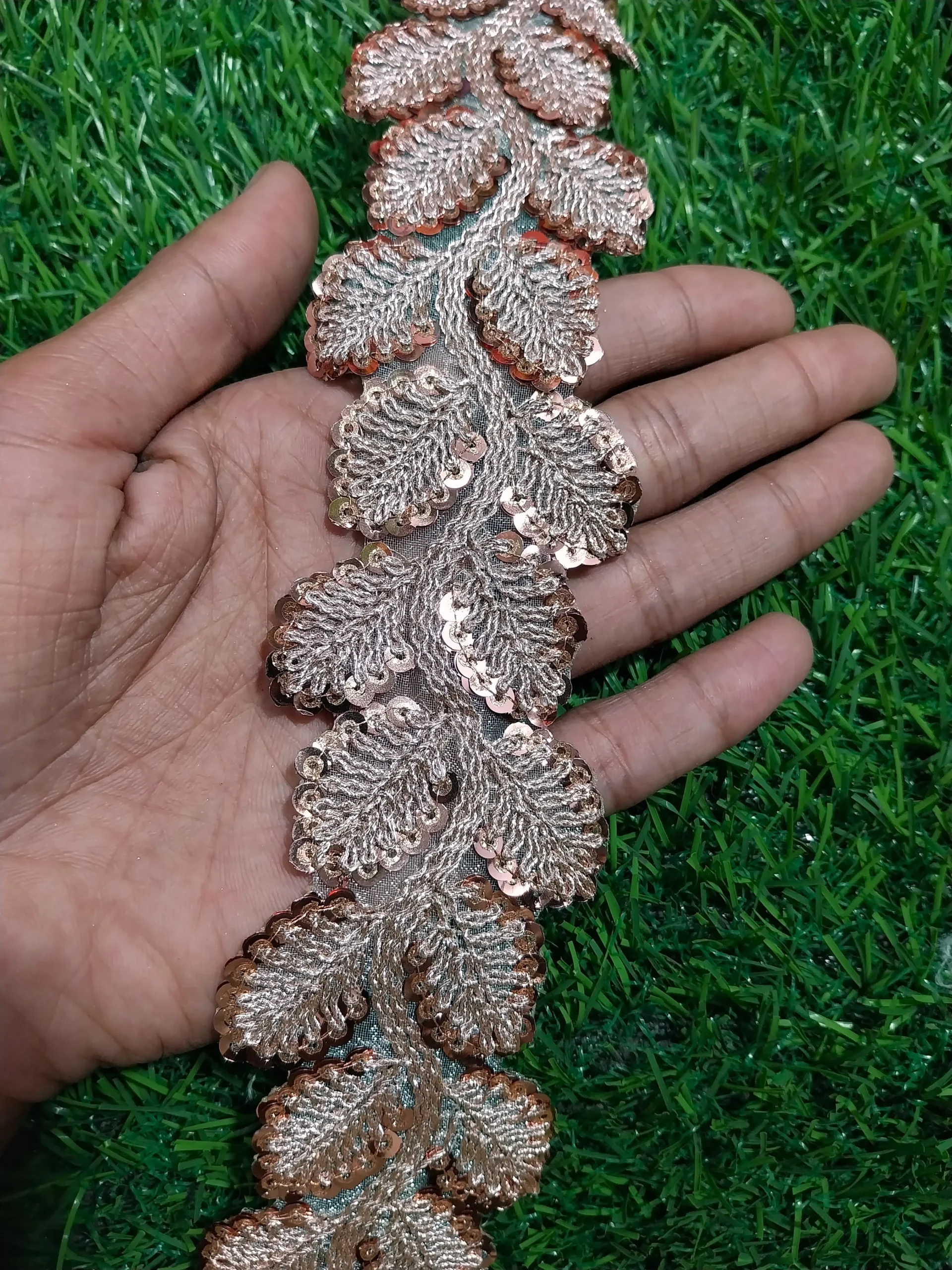 Our unique rose gold color saree lace. Give a beautiful look to your saree using our sequin work saree lace.